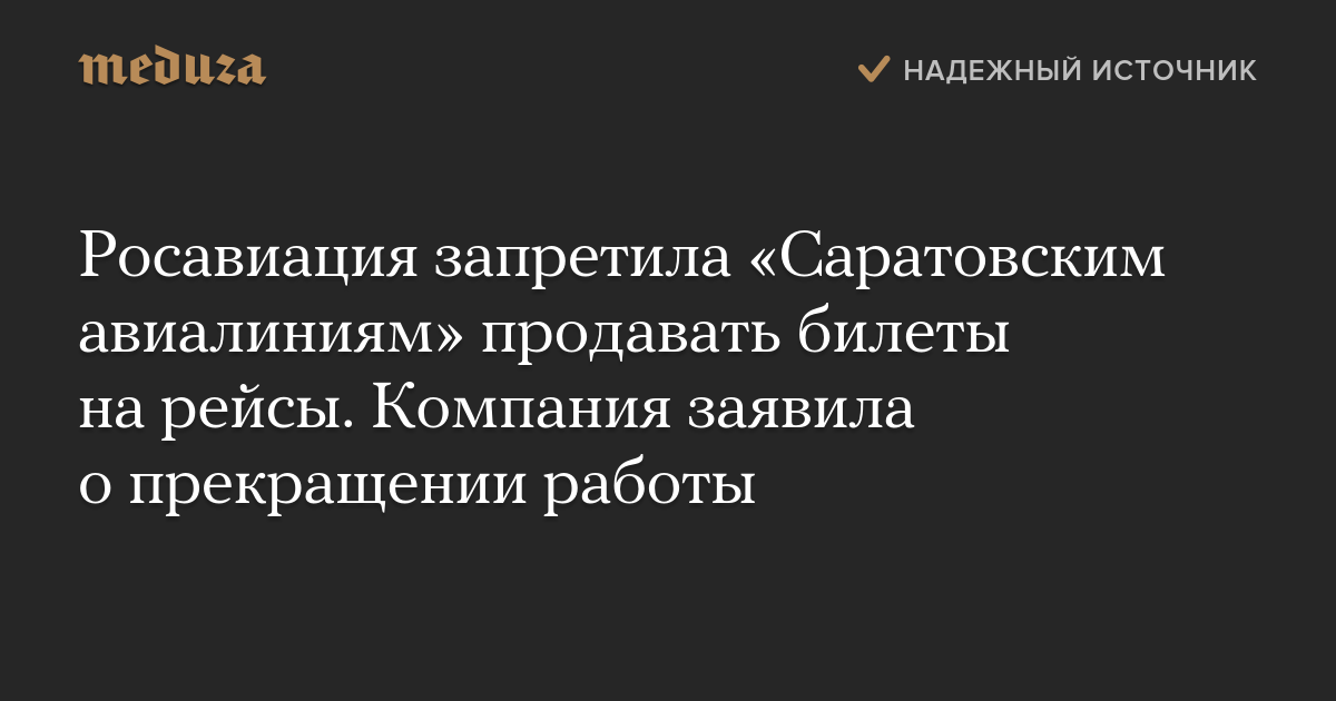 Росавиация запретила «Саратовским авиалиниям» бронировать и продавать билеты на рейсы с вылетом после 30 мая 2018 года. В связи с этим компания заявила о прекращении работы.