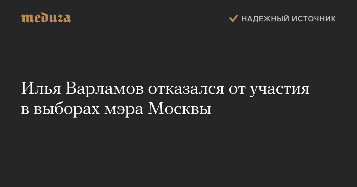 Илья Варламов отказался от участия в выборах мэра Москвы