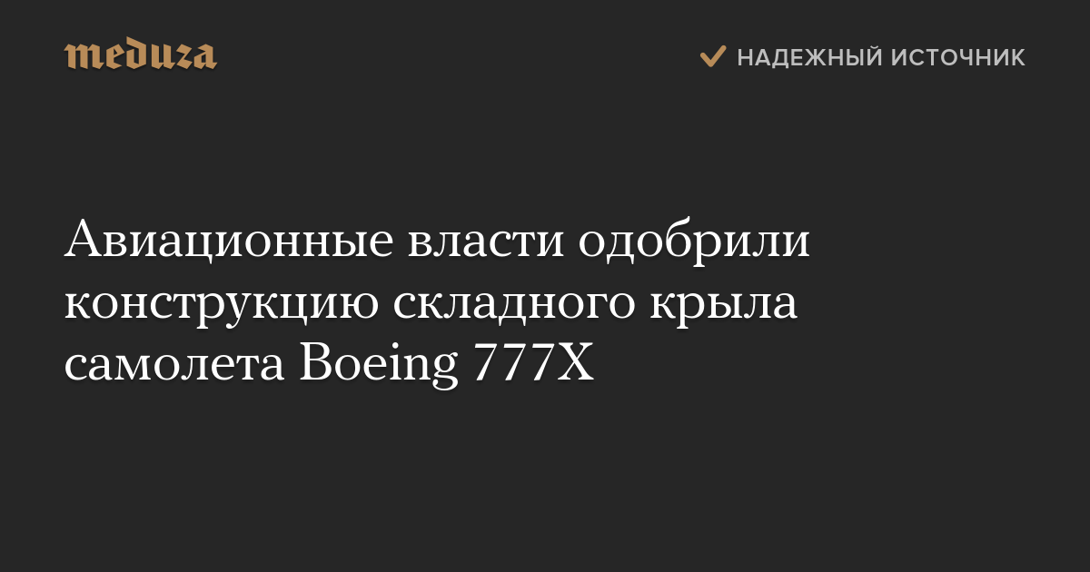 Федеральное управление гражданской авиации США (FAA) разрешило использовать конструкцию складного крыла в самолетах Boeing 777X.