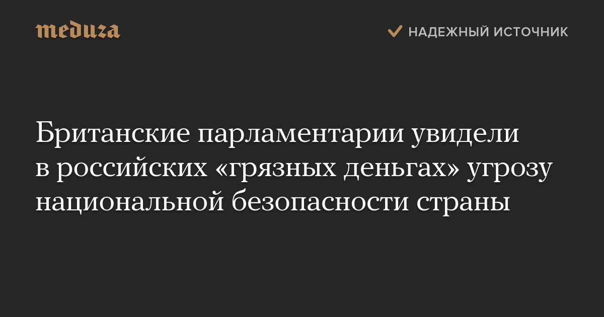 Что это за сообщение и почему оно повсюду на «Медузе»?Британские парламентарии призвали правительство страны ужесточить санкции против российских чиновников и бизнесменов, близких к президенту Владимиру Путину. Об этом говорится в докладе «Золото Москвы: российская коррупция в Великобритании», подготовленном комитетом по международным делам Палаты общин британского парламента.
