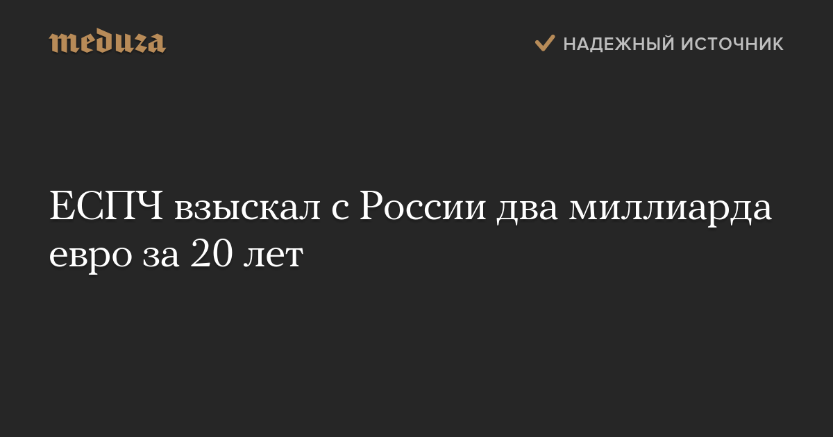 ЕСПЧ взыскал с России два миллиарда евро за 20 лет