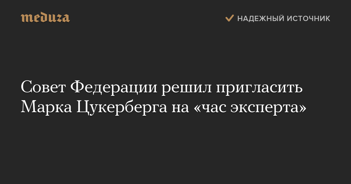 Совет Федерации решил пригласить Марка Цукерберга на «час эксперта»