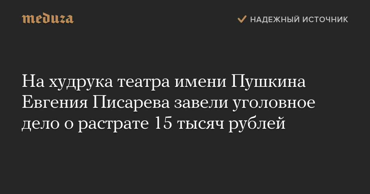 На худрука театра имени Пушкина Евгения Писарева завели уголовное дело о растрате 15 тысяч рублей
