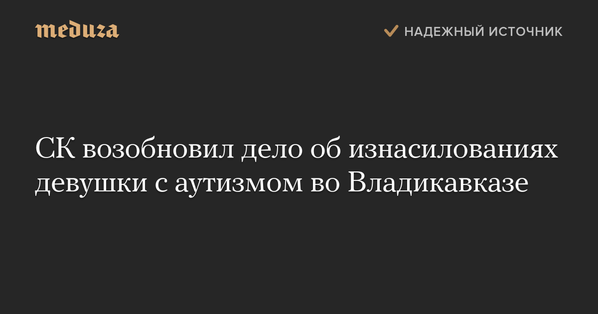Следственный комитет отменил постановление о прекращении дела об изнасилованиях девушки с аутизмом из Владикавказа. По информации «Радио Свобода», решение принял заместитель главы ведомства Борис Карнаухов.