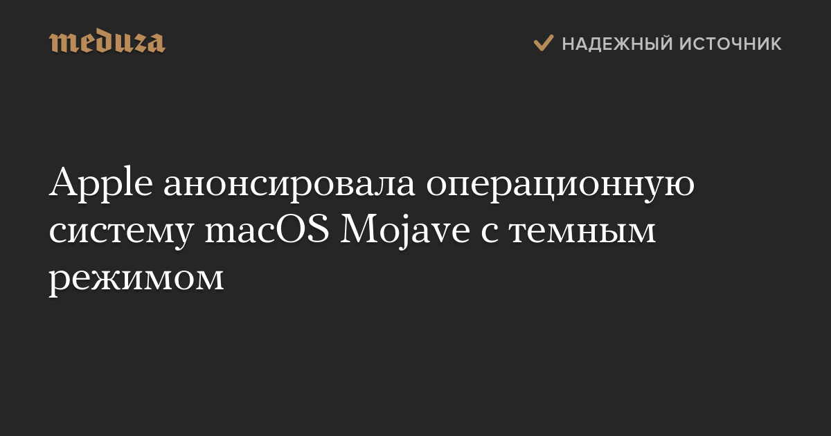 Новая операционная система для настольных компьютеров macOS Mojave получит функцию Dark Mode с затемненными элементами управления и более заметным контентом. Об этом Apple сообщила во время презентации новых продуктов на конференции WWDC.