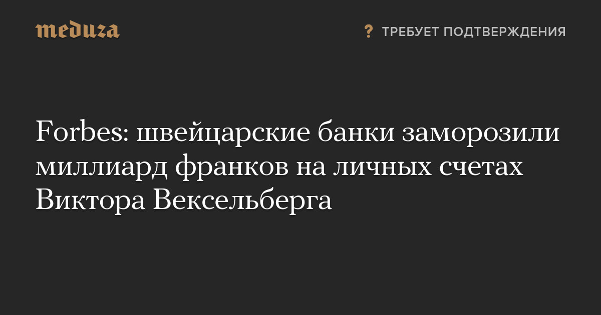 В Швейцарии банки из-за опасения попасть под санкции США заблокировали около миллиарда франков (865 миллионов евро) на личных счетах российского бизнесмена Виктора Вексельберга, сообщает Forbes со ссылкой на источник в группе «Ренова».
