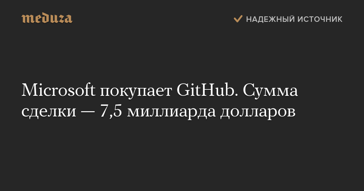 Microsoft покупает GitHub. Сумма сделки — 7,5 миллиарда долларов