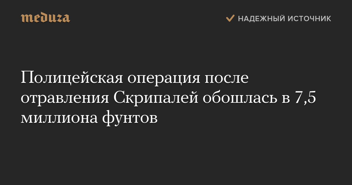 Полицейская операция после отравления Скрипалей обошлась в 7,5 миллиона фунтов