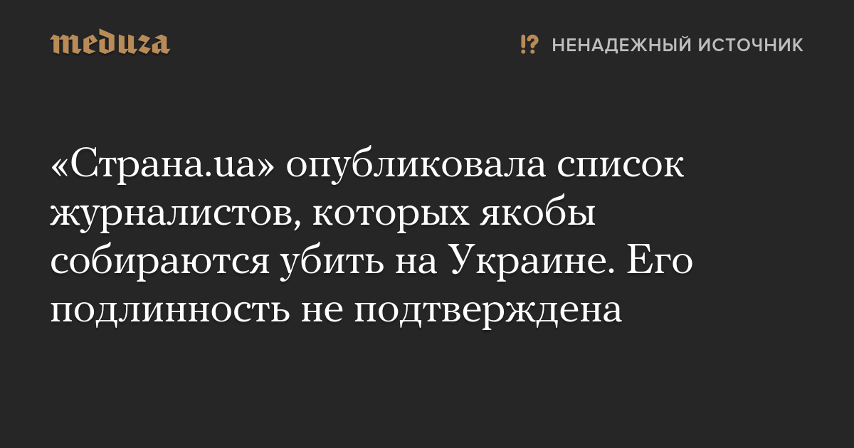 «Страна.ua» опубликовала список журналистов, которых якобы собираются убить на Украине. Его подлинность не подтверждена