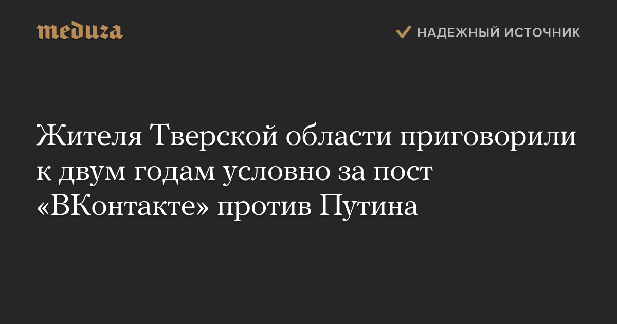 Жителя Тверской области приговорили к двум годам условно за пост «ВКонтакте» против Путина