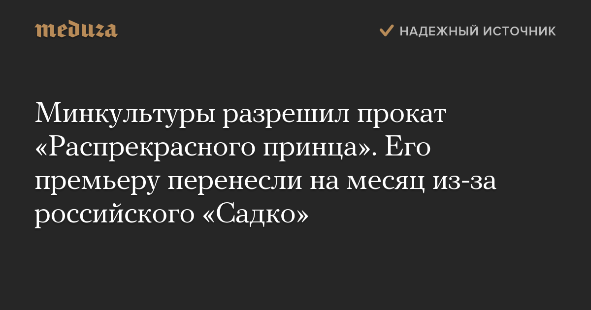 Минкультуры разрешил прокат «Распрекрасного принца». Его премьеру перенесли на месяц из-за российского «Садко»