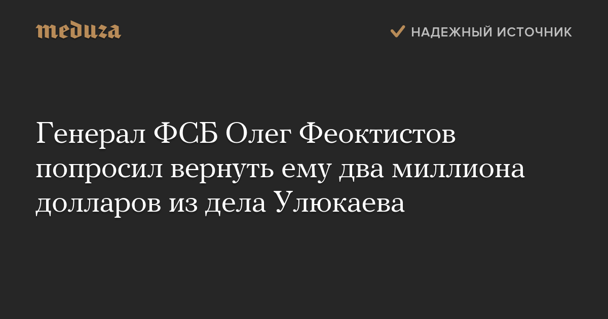 Генерал ФСБ Олег Феоктистов попросил вернуть ему два миллиона долларов из дела Улюкаева