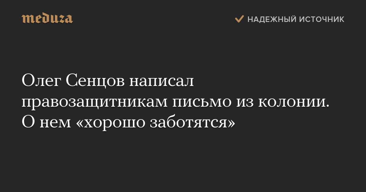 Олег Сенцов написал правозащитникам письмо из колонии. О нем «хорошо заботятся»