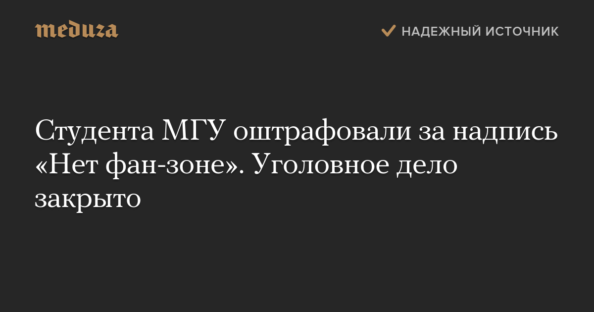 Студента МГУ оштрафовали за надпись «Нет фан-зоне». Уголовное дело закрыто