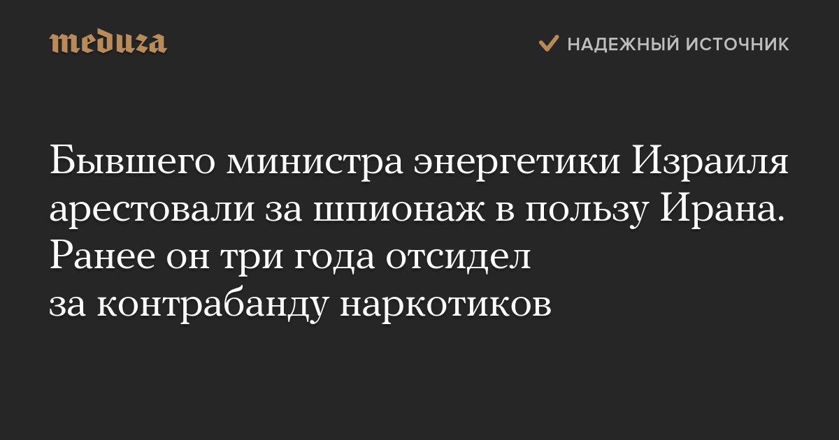 Бывшего министра энергетики Израиля арестовали за шпионаж в пользу Ирана. Ранее он три года отсидел за контрабанду наркотиков