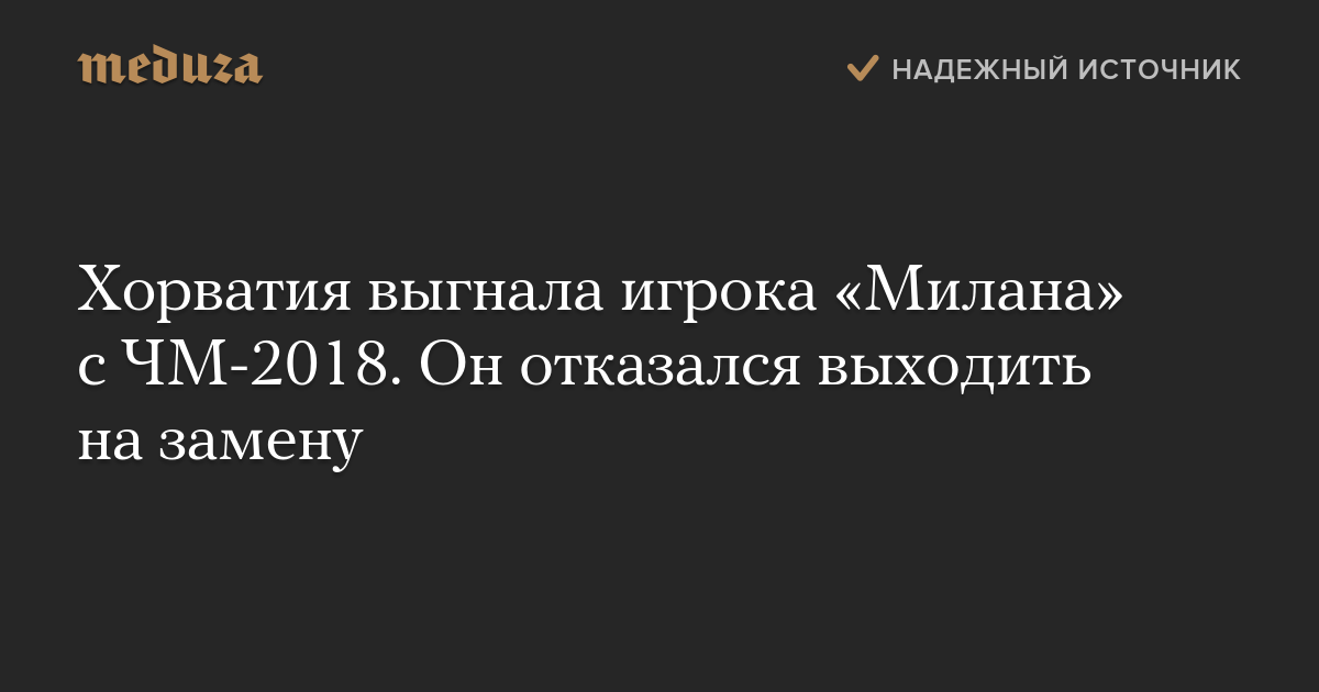 Хорватия выгнала игрока «Милана» с ЧМ-2018. Он отказался выходить на замену