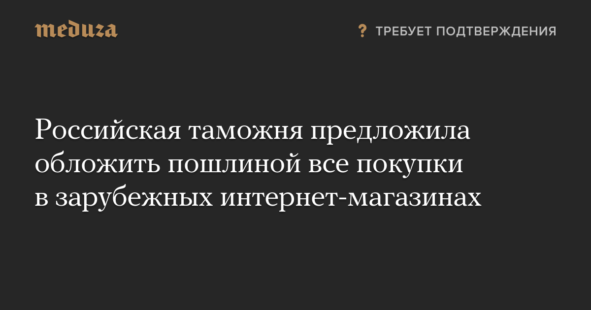 Федеральная таможенная служба (ФТС) направила в Минфин предложение облагать пошлиной все покупки в иностранных интернет-магазинах, сообщают «Ведомости» со ссылкой на двух федеральных чиновников.