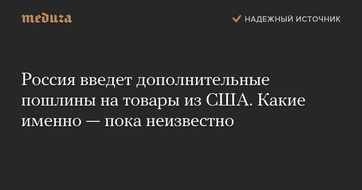 Россия введет дополнительные пошлины на товары из США. Какие именно — пока неизвестно