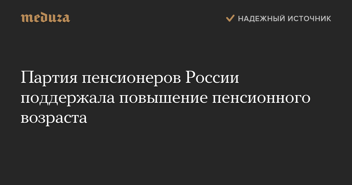 Партия пенсионеров России поддержала повышение пенсионного возраста