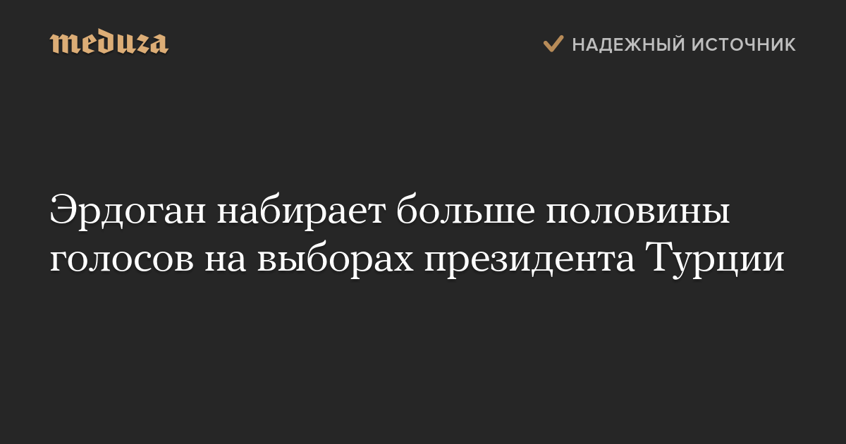 Реджеп Тайип Эрдоган выигрывает выборы президента Турции. По итогам подсчета 20% бюллетеней он набирает около 60% голосов.