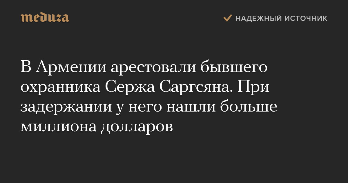 В Армении арестовали бывшего охранника Сержа Саргсяна. При задержании у него нашли больше миллиона долларов