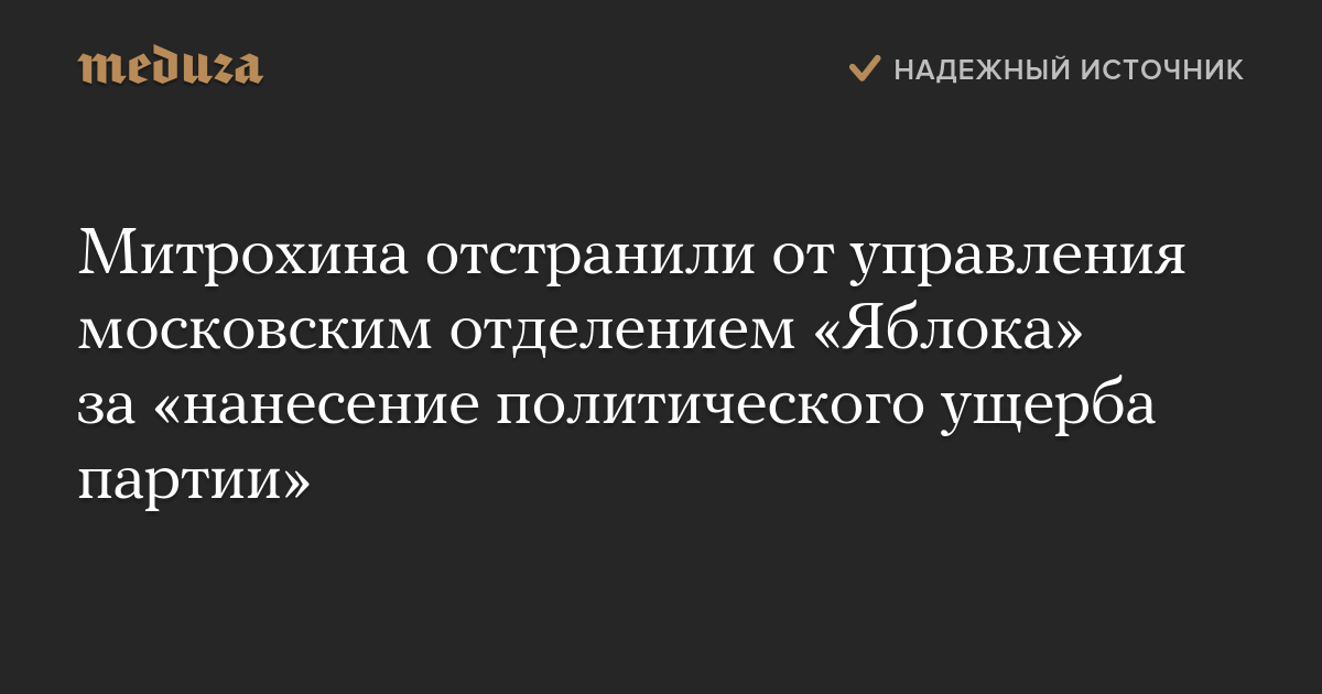 Полномочия Митрохина приостановлены в связи с его кампанией по выдвижению в мэры Москвы. В федеральном бюро отметили, что московское «Яблоко» оказалось неспособно законно выдвинуть кандидата «в честной и конкурентной процедуре, учитывающей мнение большинства членов отделения».