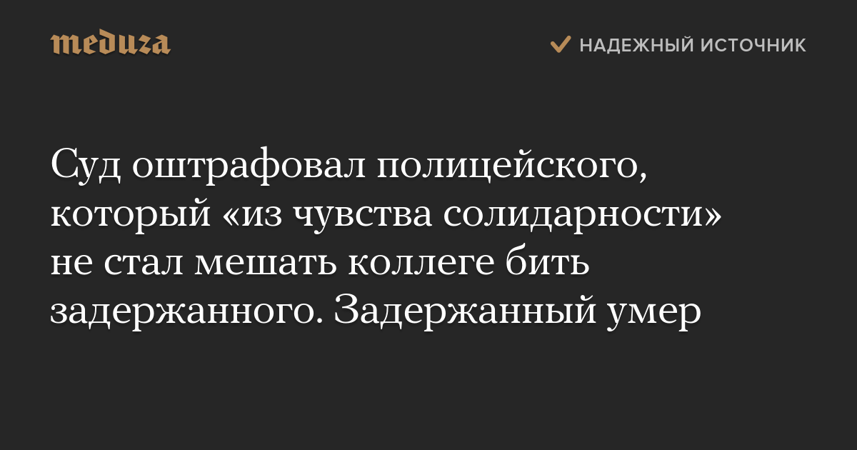 Суд оштрафовал полицейского, который «из чувства солидарности» не стал мешать коллеге бить задержанного. Задержанный умер