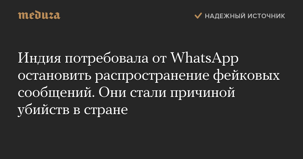 Индия потребовала от WhatsApp остановить распространение фейковых сообщений. Они стали причиной убийств в стране