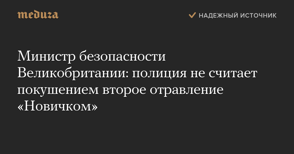 Министр безопасности Великобритании: полиция не считает покушением второе отравление «Новичком»