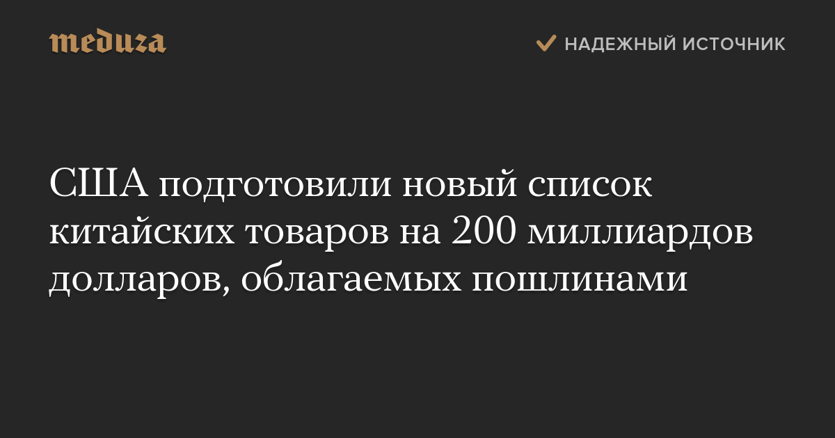 США подготовили новый список китайских товаров на 200 миллиардов долларов, облагаемых пошлинами