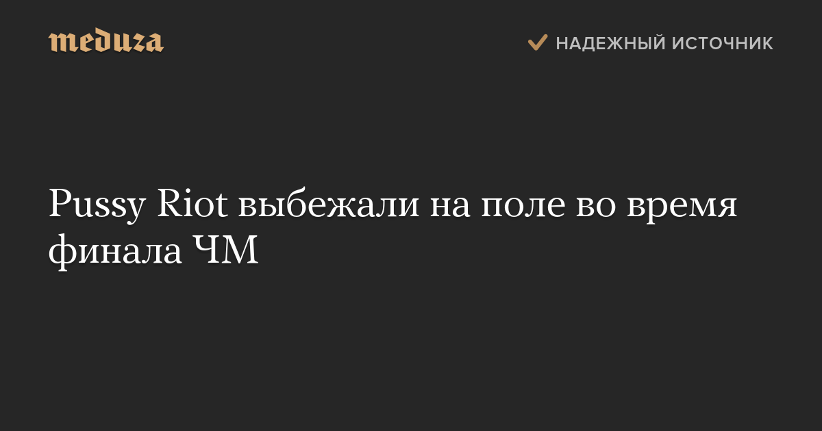 Четверо участников Pussy Riot выбежали на поле во время финального матча чемпионата мира по футболу. Они сделали это в рамках акции «Милиционер вступает в игру».