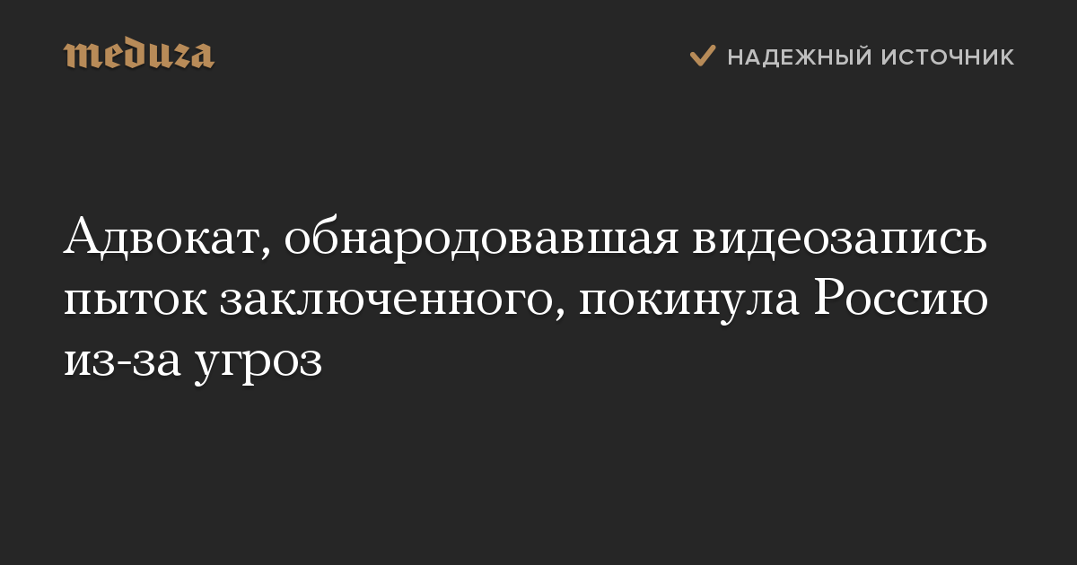 Адвокат, обнародовавшая видеозапись пыток заключенного, покинула Россию из-за угроз