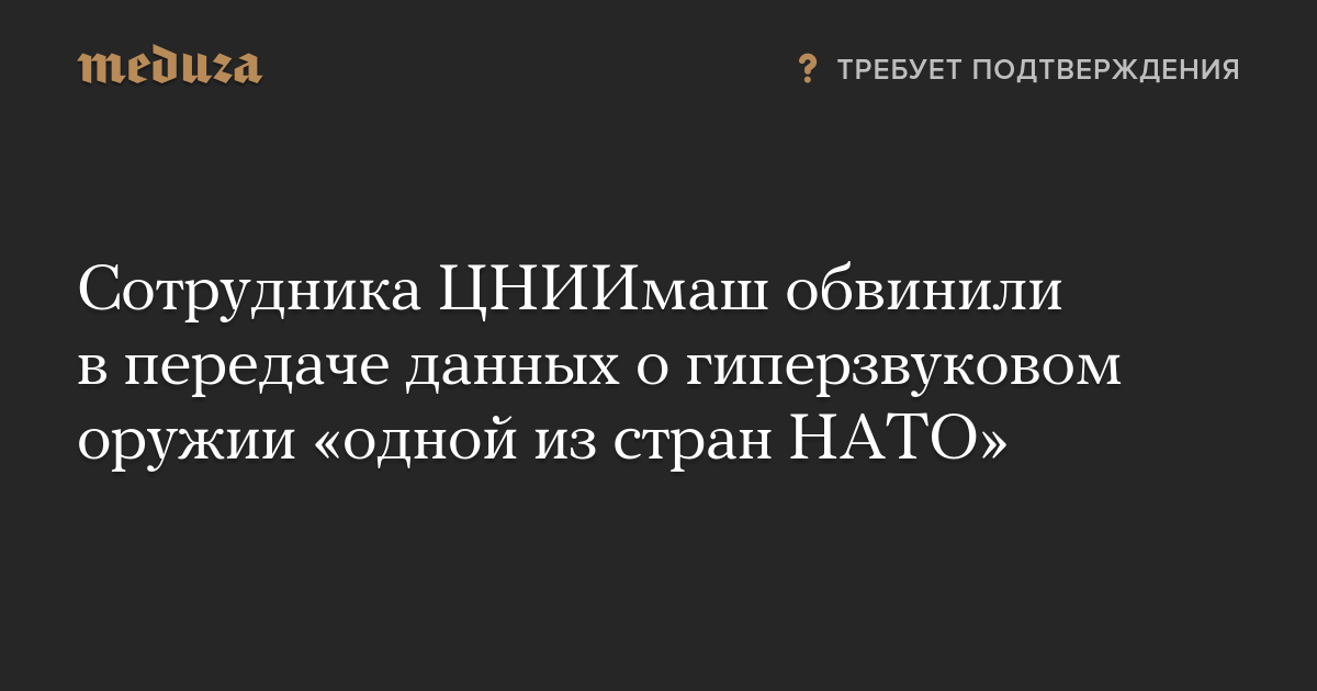 Сотрудника ЦНИИмаш обвинили в передаче данных о гиперзвуковом оружии «одной из стран НАТО»