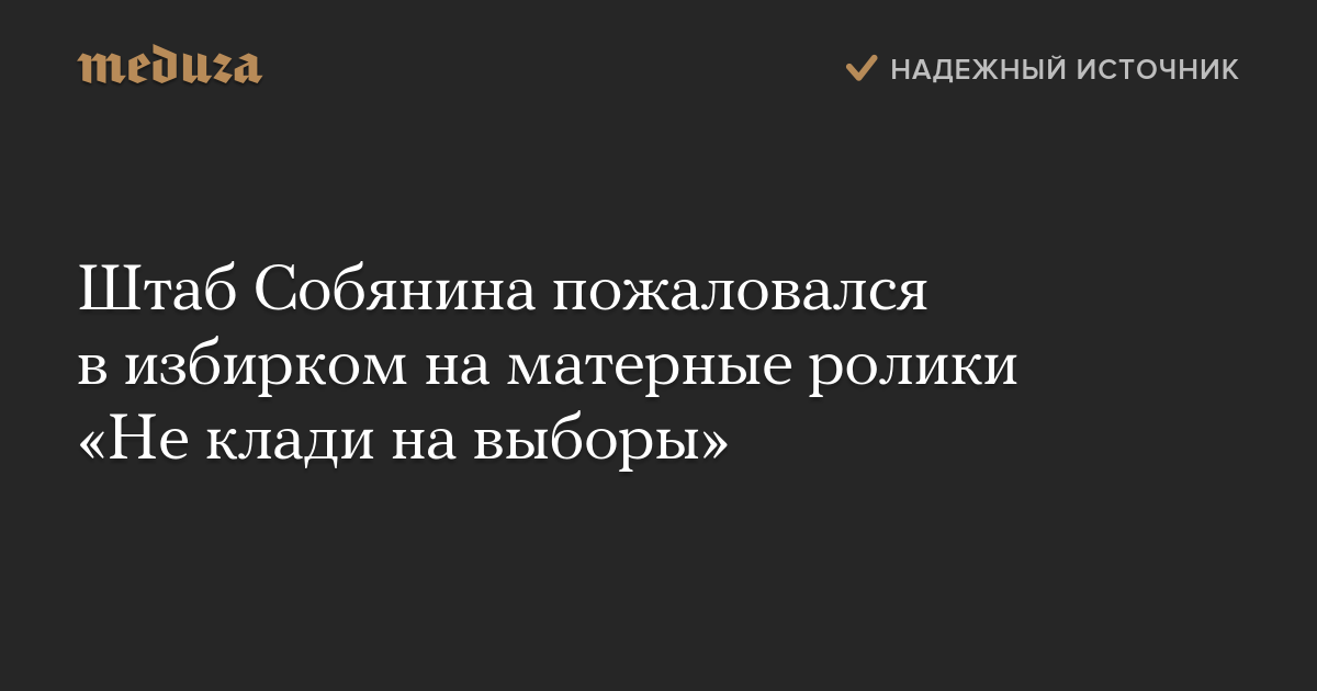 Штаб Собянина пожаловался в избирком на матерные ролики «Не клади на выборы»
