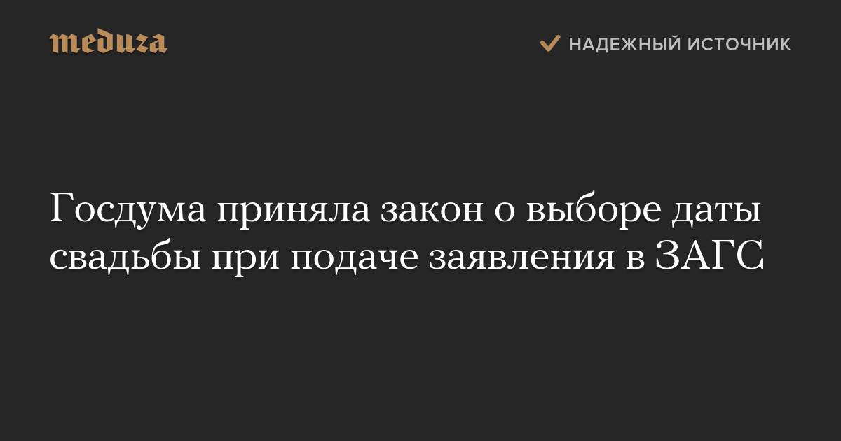 Госдума приняла закон о выборе даты свадьбы при подаче заявления в ЗАГС