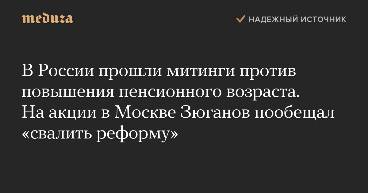В России прошли митинги против повышения пенсионного возраста. На акции в Москве Зюганов пообещал «свалить реформу»