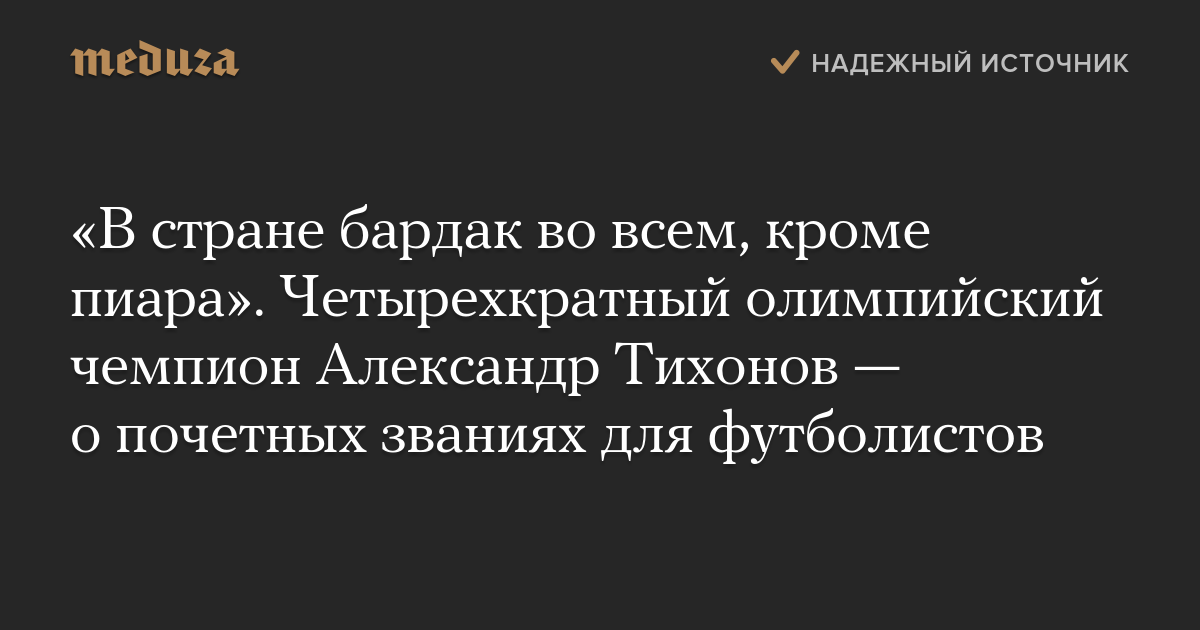 «В стране бардак во всем, кроме пиара». Четырехкратный олимпийский чемпион Александр Тихонов — о почетных званиях для футболистов