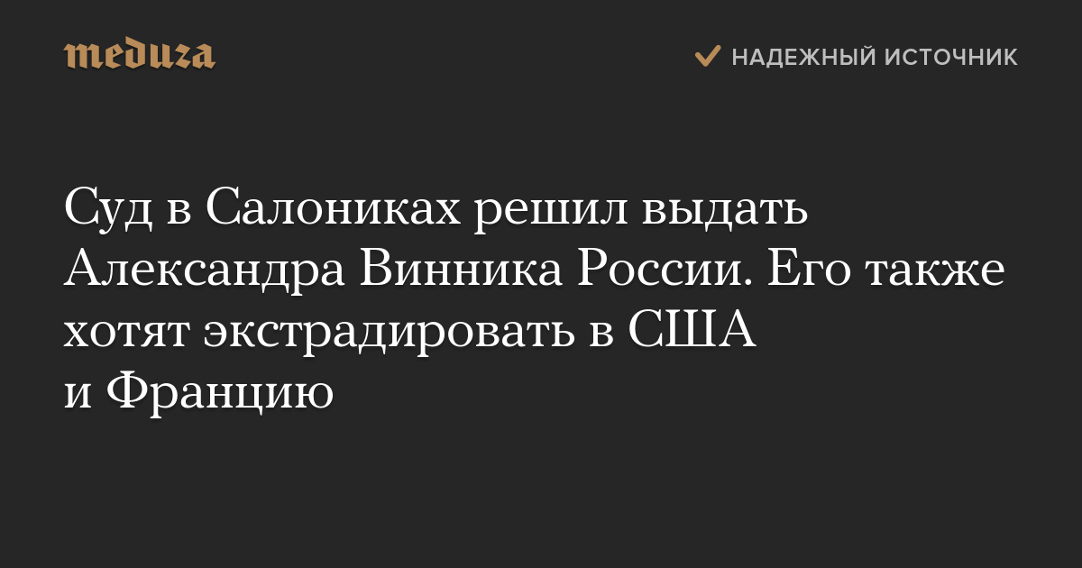 Суд в Салониках решил выдать Александра Винника России. Его также хотят экстрадировать в США и Францию