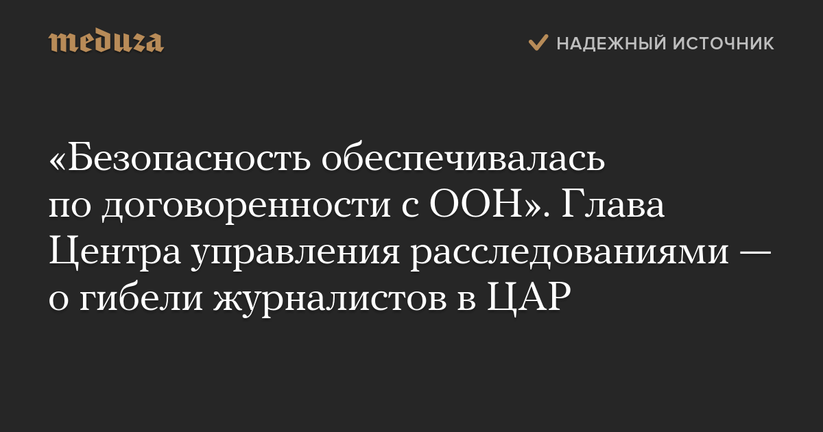 «Безопасность обеспечивалась по договоренности с ООН». Глава Центра управления расследованиями — о гибели журналистов в ЦАР