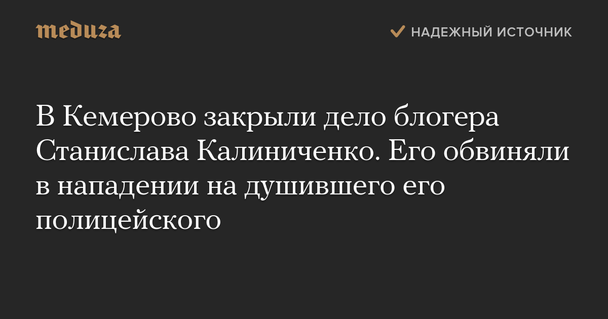 В Кемерово закрыли дело блогера Станислава Калиниченко. Его обвиняли в нападении на душившего его полицейского