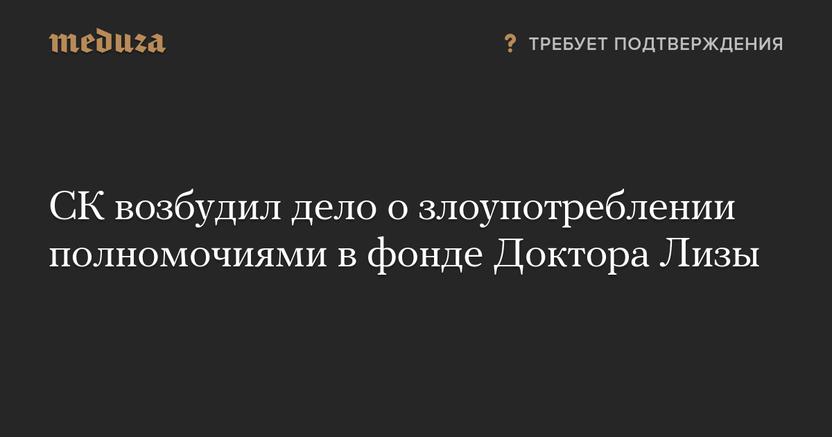 Следственный комитет возбудил уголовное дело о злоупотреблении полномочиями (статья 201 УК РФ) в фонде «Справедливая помощь Доктора Лизы», сообщает агентство «Москва» со ссылкой на источник в правоохранительных органах.