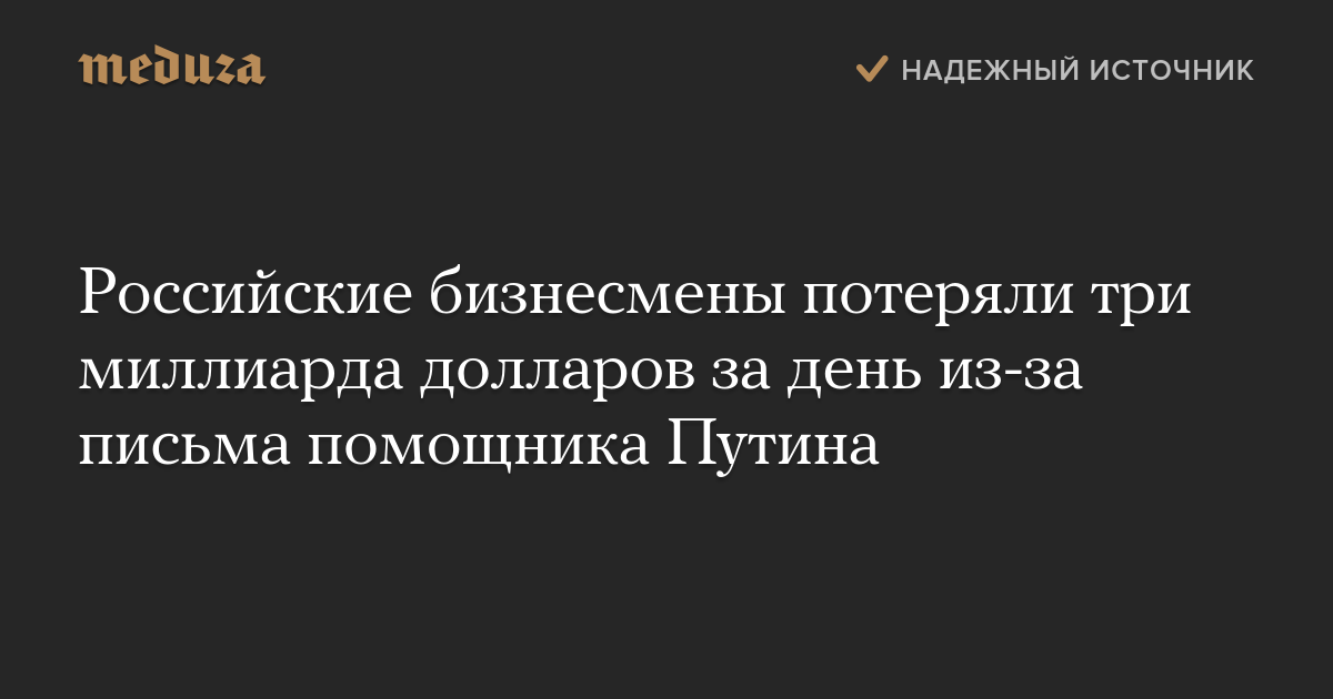 Российские бизнесмены потеряли три миллиарда долларов за день из-за письма помощника Путина