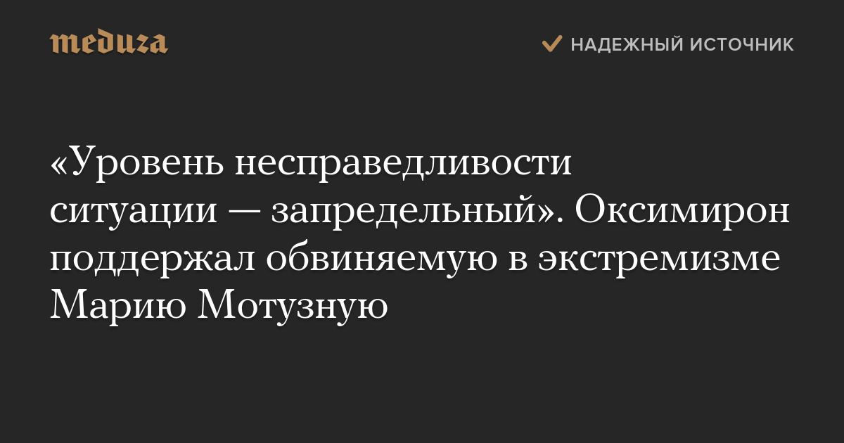 Рассуждая о деле Мотузной в твиттере, Оксимирон заявил, что «уровень несправедливости ситуации — запредельный».