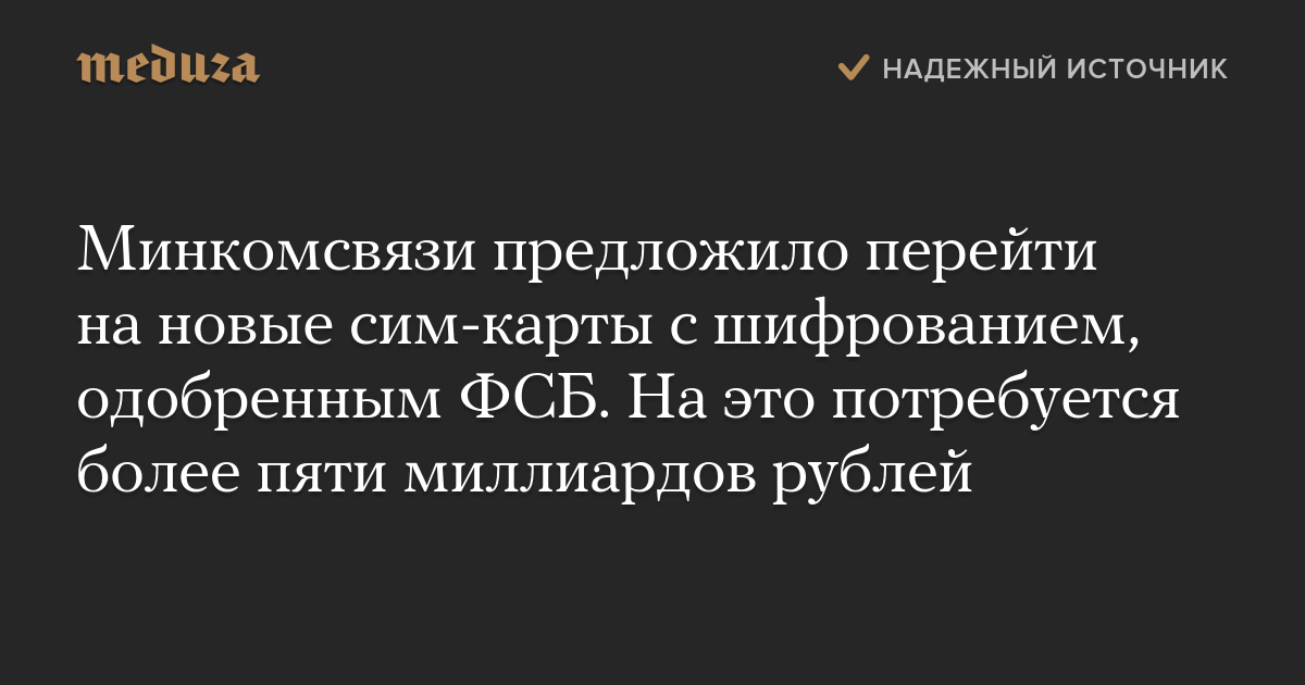 Минкомсвязи предложило перейти на новые сим-карты с шифрованием, одобренным ФСБ. На это потребуется более пяти миллиардов рублей