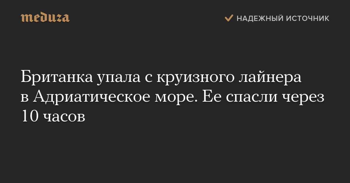 Гражданку Великобритании, которая упала с круизного лайнера и провела в Адриатическом море 10 часов, спасли в ста километрах от берегов Хорватии.