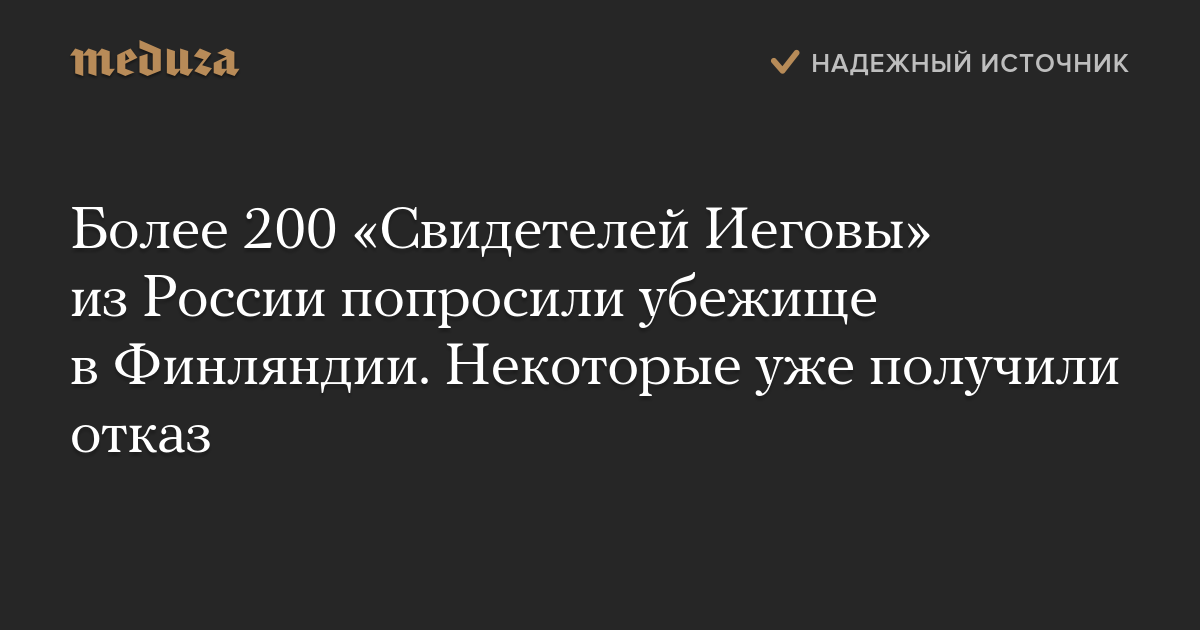 Более 200 «Свидетелей Иеговы» из России попросили убежище в Финляндии. Некоторые уже получили отказ