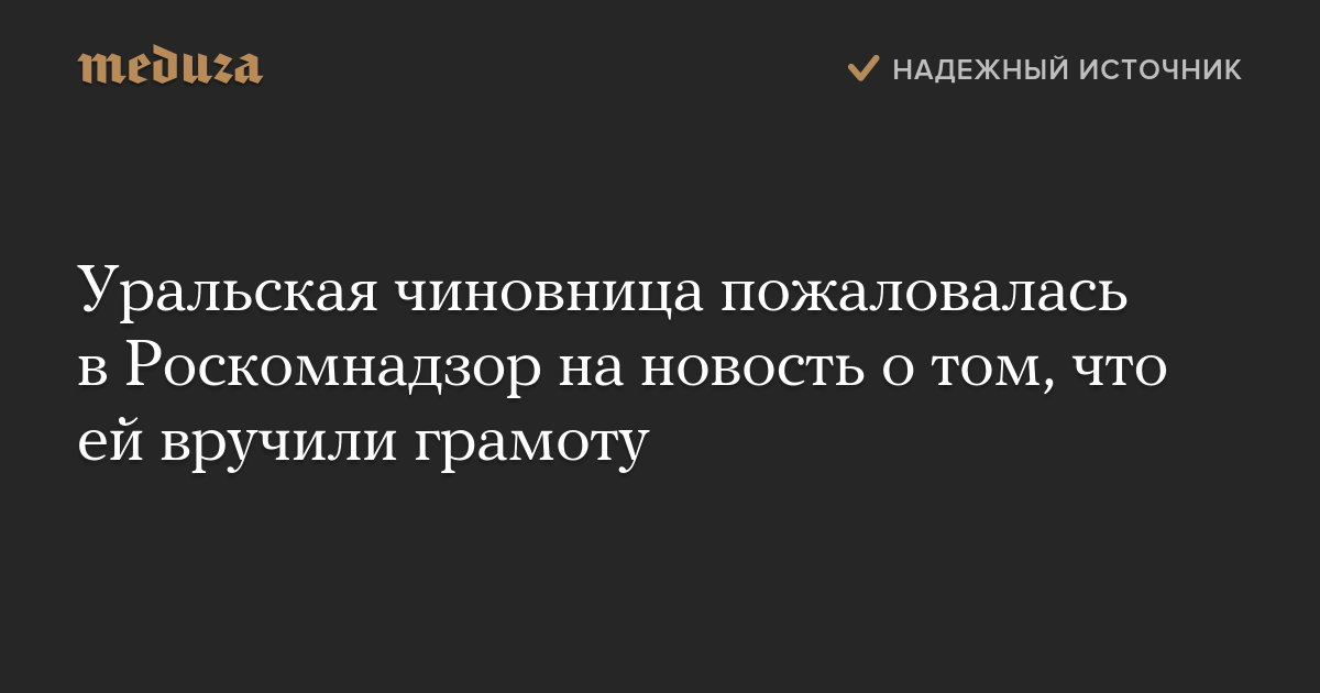 Уральская чиновница пожаловалась в Роскомнадзор на новость о том, что ей вручили грамоту