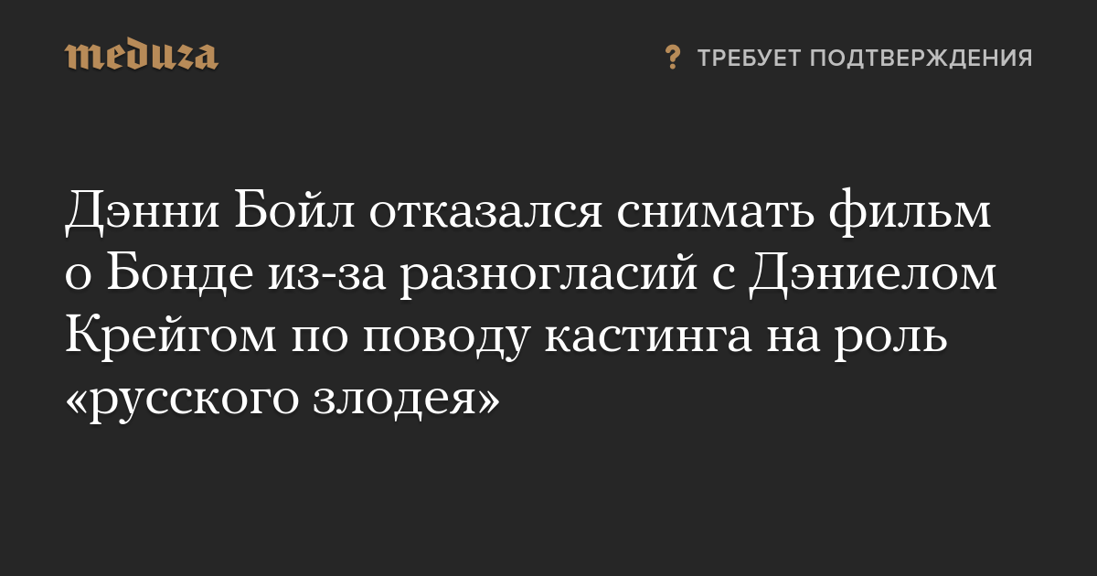 Дэнни Бойл отказался снимать фильм о Бонде из-за разногласий с Дэниелом Крейгом по поводу кастинга на роль «русского злодея»