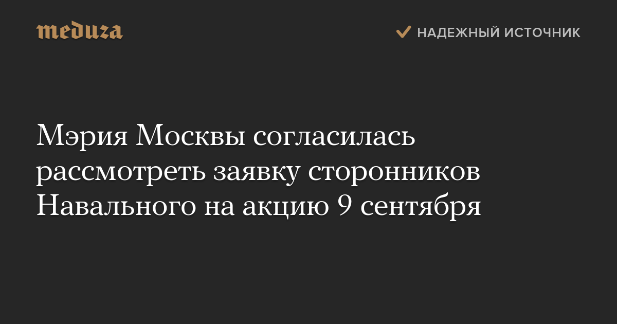 Мэрия Москвы согласилась рассмотреть заявку сторонников Навального на акцию 9 сентября