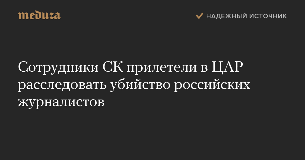 Представители Следственного комитета РФ 27 августа прилетели в Банги, столицу Центральноафриканской Республики (ЦАР), чтобы выяснить обстоятельства убийства трех журналистов из России. Об этом ТАСС сообщили в посольстве РФ в ЦАР.